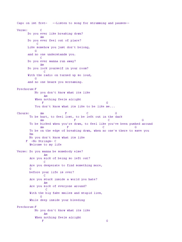 Welcome To My Life Chords Pdf Necked Lutes Musical Instruments